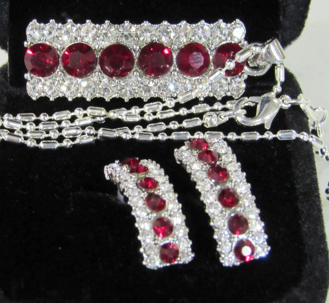 616 Red and Clear Stone Pendant on a .925 Marked Chain with a Matching Set of Pierced Earrings