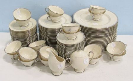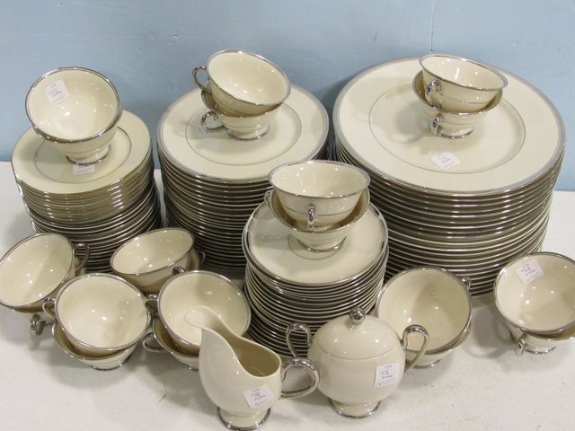 718 Set of Platinum Rimmed Ivory China, By Franciscan Co. and Lenox China Co.