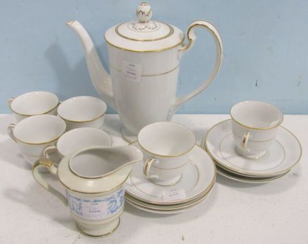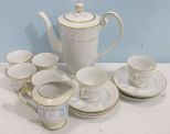 720 Noritake White with Gold Rimmed Demitasse Tea Set with Pot and Six Cups and Saucers and also a Occupied Japan Hira Creamer