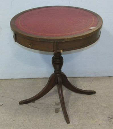 839 Duncan Phyfe Drum Table with Leather Top and a Drawer