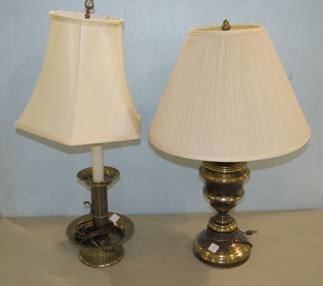1036 Two Brass Plated Lamps One in a Chamberstick Style Form