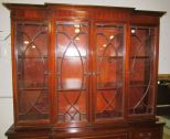 528 Mahogany Breakfront with Four Upper Glass Doors, Six Drawers and Two Lower Cabinet Doors and a Drop Down Desk