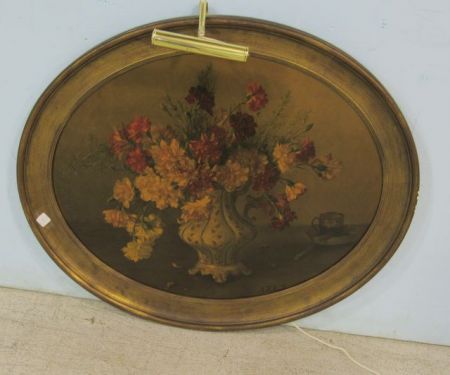 907 Oval Floral Print Framed with Light