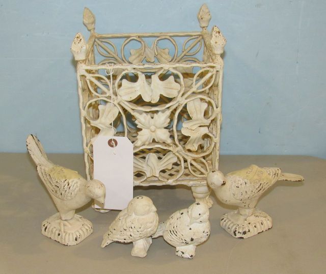 578 Metal Planter with Two Metal Birds and Two Pottery Birds