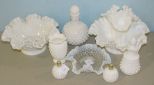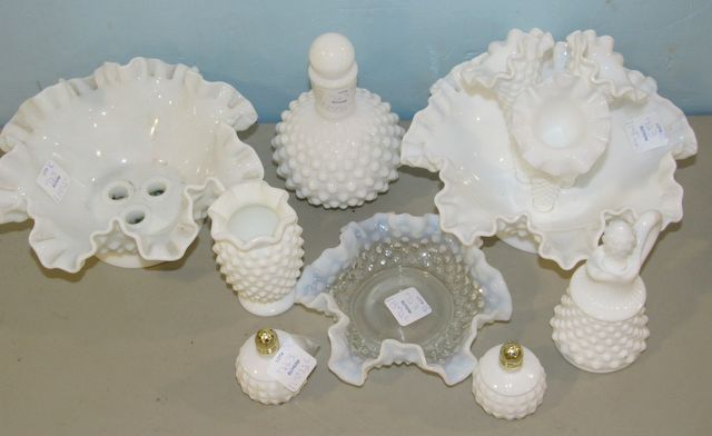 723 Group of Fenton Hobnail Milk Glass and a Opalescent Glass Dish