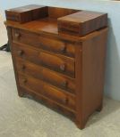 Has repairs and veneer damage. The mirror brackets are gone and this has been adapted to hang on the wall. Chest measures 41" w x 17" d x 43" h. The mirror measures 27" x 33". Has repairs and veneer damage. The mirror brackets are gone and this has been adapted to hang on the wall. Chest measures 41" w x 17" d x 43" h. The mirror measures 27" x 33".