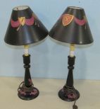 1045 Pair of Painted Candlestick Lamps with Matching Shades