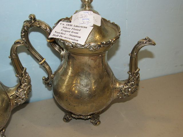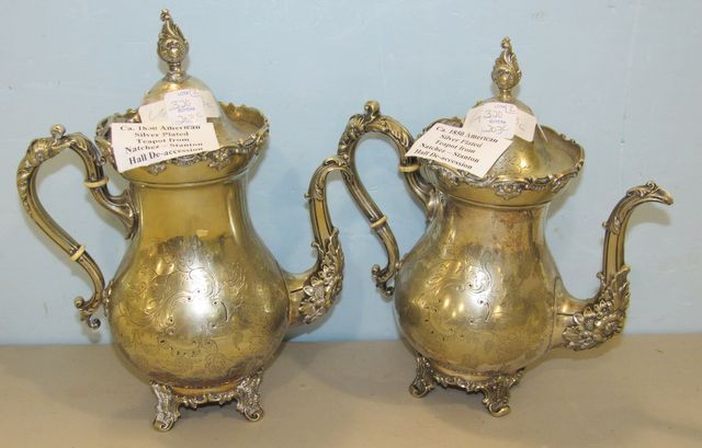 320 Pair of Rogers Brothers Mfg Co. German Silver Teapots Patented Feb 25 1858