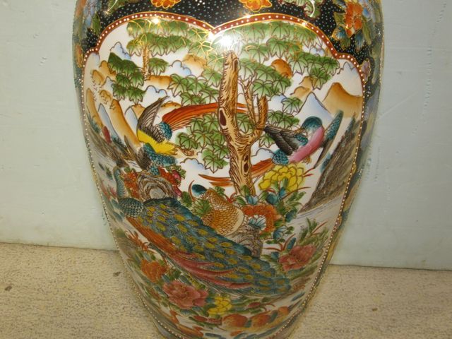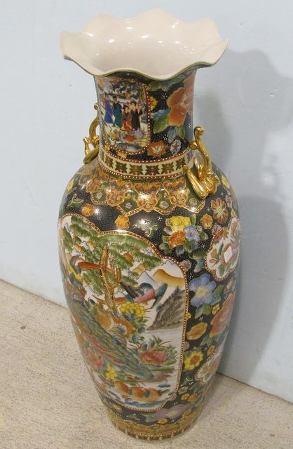 The vase measures 36" high and the stand is 9" high. The vase measures 36" high and the stand is 9" high.
