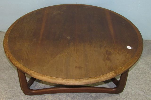 Measures 38" diameter x 14" high. Has finish issues. Measures 38" diameter x 14" high. Has finish issues.