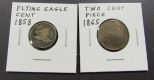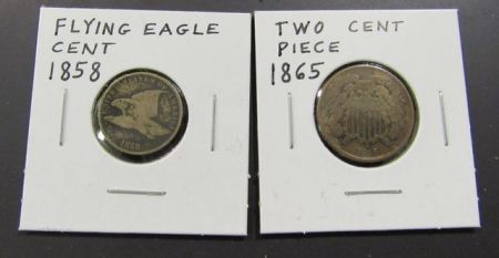 775 Flying Eagle Cent 1858 and a Two Cent Piece 1865