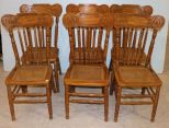 565 Six Oak Pressed Back with Cane Bottom Seat Dining Chairs