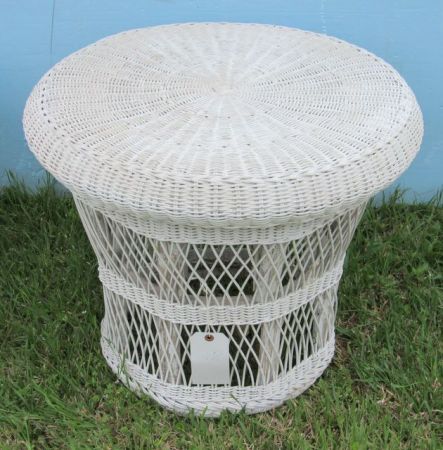 880 Round White Wicker Table
