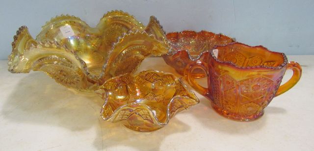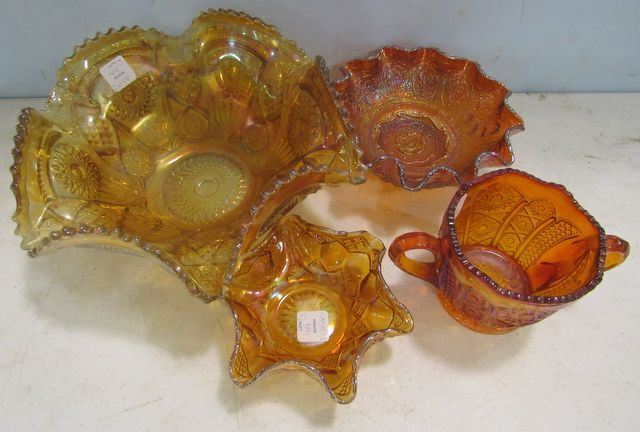 Largest bowl is Imperial Glass Hobstar and Flower pattern. It measures 12" diameter and one bowl is marked Fenton. Largest bowl is Imperial Glass Hobstar and Flower pattern. It measures 12" diameter and one bowl is marked Fenton.