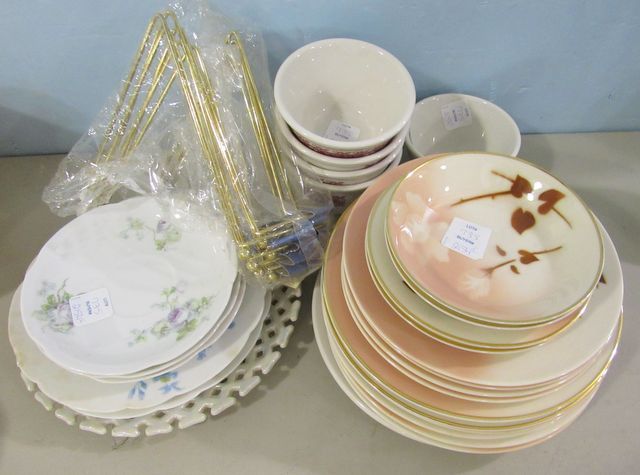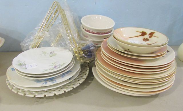 Includes six salad plates, two saucers and two berry bowls. Plus six pieces of restaurant ware with some addition pieces. Includes six salad plates, two saucers and two berry bowls. Plus six pieces of restaurant ware with some addition pieces.