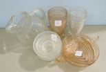 746 Hazel-Atlas Moderntone Ball Pitcher, a Pink and Clear Tumbler, a Handled Dish, a Pink Dish and Three Votive Holders