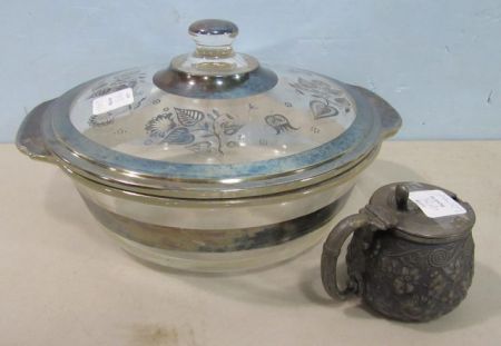 978 Lidded Silver Decorated Casserole and a Antique Reed and Barton Mustard Pot