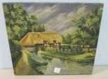 316 H. P. W. Naive Painted Thatched Roof Cottage