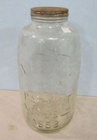 482 Large Glass Mason's 5 Gallon Pickle Jar with Patent Nov. 30th 1853 and an Eagle on the Back