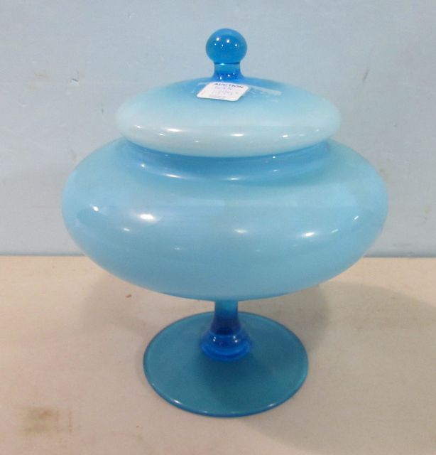 698 Empoli Blue Glass Compote with Lid