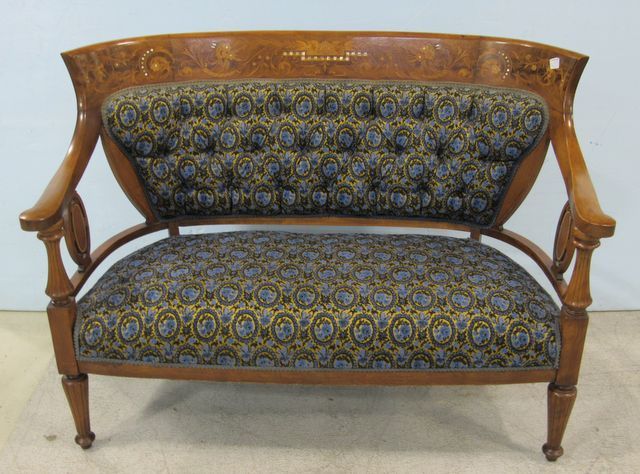 242 Inlaid Sette with Tufted Back and Upholstered Seat