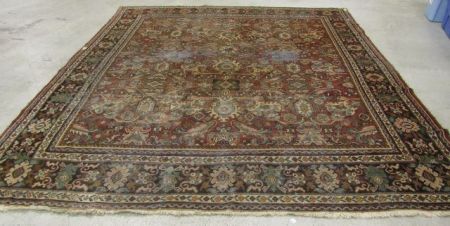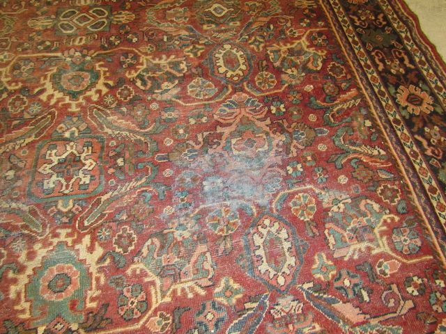 Measures 11'7" x 10'1". There is heavy wear. Measures 11'7" x 10'1". There is heavy wear.