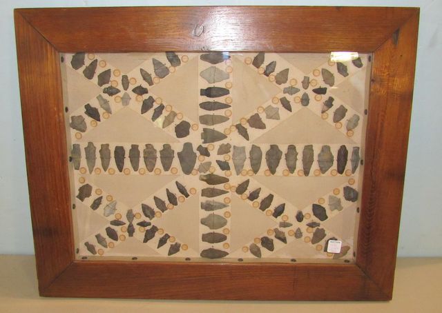 490 Shadow Box Framed Large Group of Arrowheads and Points