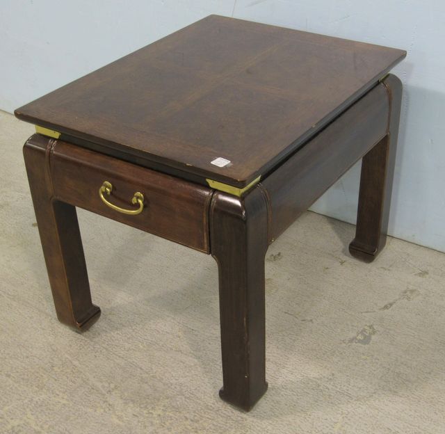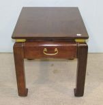 343 Bernhardt Ming Style Side Table with Drawer and Brass Accents