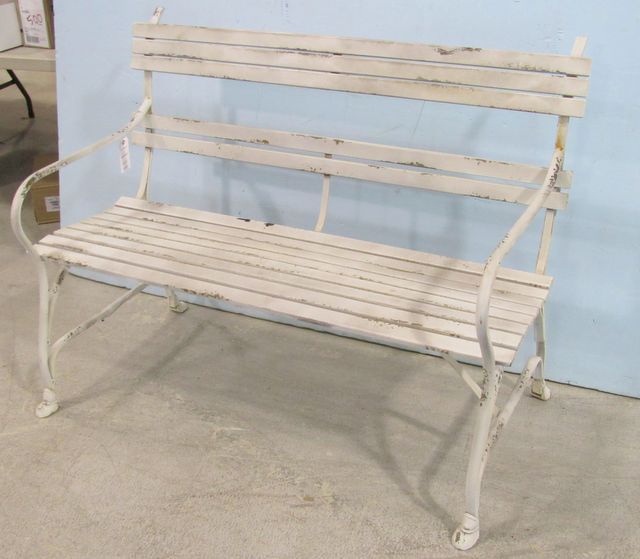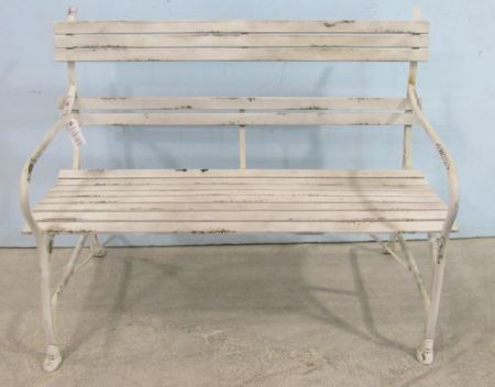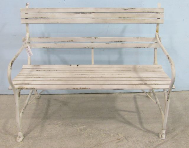 349 Painted White Metal Park Bench With Front Hoof Feet