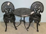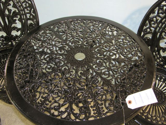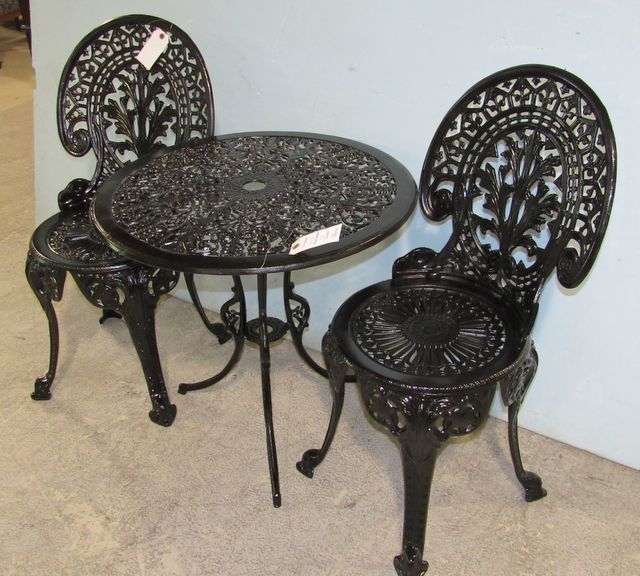 The chairs are 33" high and the table measures, 25 1/2" dia x 21" high. The chairs are 33" high and the table measures, 25 1/2" dia x 21" high.
