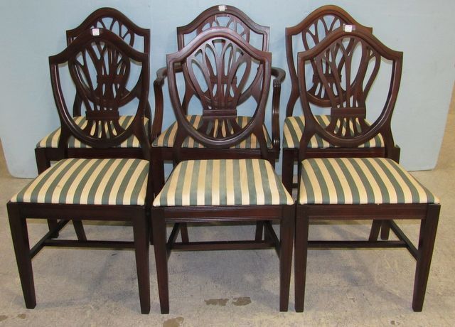 Includes five sides and one arm. Side chairs measure 20" w x 18" d x 38" h. Includes five sides and one arm. Side chairs measure 20" w x 18" d x 38" h.