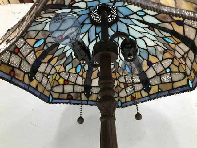 259 Antique Reproduction Dragonfly Tiffany Style Lamp