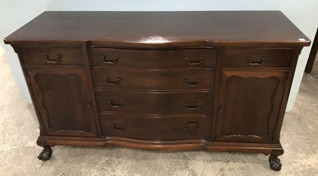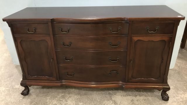 Georgetown Galleries Mahogany Ball-n-Claw Buffet, double door, 6 drawers, top has swirls and scratches, 36"h., 66"w., 21"d. Georgetown Galleries Mahogany Ball-n-Claw Buffet, double door, 6 drawers, top has swirls and scratches, 36"h., 66"w., 21"d.