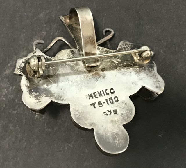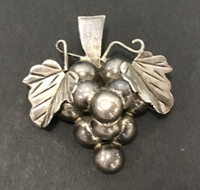 Combination Brooch and Pendant .925, grapes and leaves, marked Mexico, 1 1/2". Combination Brooch and Pendant .925, grapes and leaves, marked Mexico, 1 1/2".