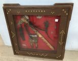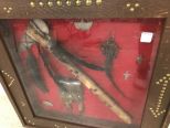 Native American Replica Tomahawk shadow box framed with arrow heads and pouch, framed 27"h., 27"w. Native American Replica Tomahawk shadow box framed with arrow heads and pouch, framed 27"h., 27"w.