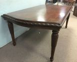 Modern Antique Style Rectangle Dining Table, ornate designs, white spot on top, few small nics on border, good condition, one leaf, 29"h., 77"w., 44"d. Modern Antique Style Rectangle Dining Table, ornate designs, white spot on top, few small nics on border, good condition, one leaf, 29"h., 77"w., 44"d.
