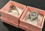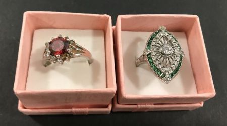 Cocktail ring with red glass center stone, size 9, Cocktail Green Glass ring, size 7. Cocktail ring with red glass center stone, size 9, Cocktail Green Glass ring, size 7.