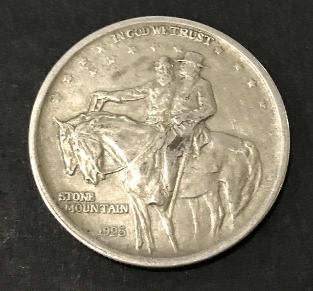 1925 Stone Mountain Half Dollar, Philadelphia Mint, raise money on behalf of the Stone Mountain Confederate Monumental Association for the Stone Mountain Memorial, 90.0% silver; 10.0% copper 1925 Stone Mountain Half Dollar, Philadelphia Mint, raise money on behalf of the Stone Mountain Confederate Monumental Association for the Stone Mountain Memorial, 90.0% silver; 10.0% copper