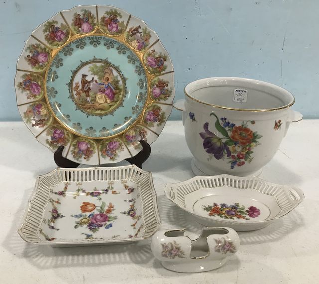 Bareuther Waldsassen Bavaria Porcelain pot, R S Prussia holder, Bavaria dish, and candy dish. Bareuther Waldsassen Bavaria Porcelain pot, R S Prussia holder, Bavaria dish, and candy dish.