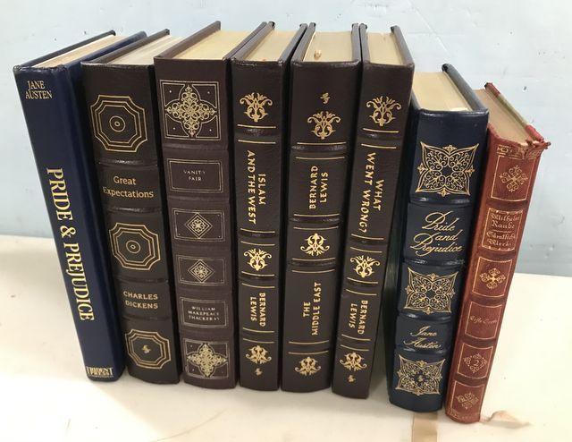 Easton Press Hard Bound Books, 8 total, Pride and Prejudice, Great Expectations, Charles Dickens, Vanity Fair, Islam and the West, The Middle East, What Went wrong, Bride and Prejudice, good condition. Easton Press Hard Bound Books, 8 total, Pride and Prejudice, Great Expectations, Charles Dickens, Vanity Fair, Islam and the West, The Middle East, What Went wrong, Bride and Prejudice, good condition.