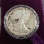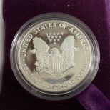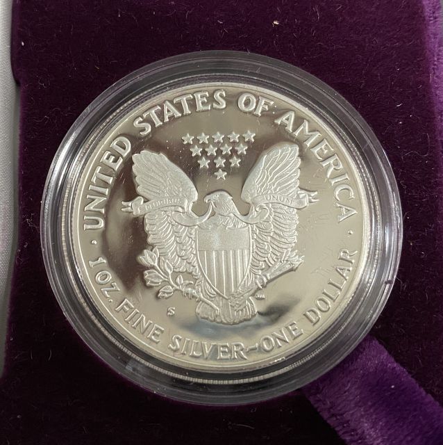 1986 Silver American Eagle One Dollar Coin, San Francisco mint, S mark, 99.9 silver, in case. 1986 Silver American Eagle One Dollar Coin, San Francisco mint, S mark, 99.9 silver, in case.
