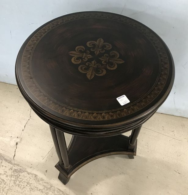 Modern Bombay Company Round Top Side Table, two tier, black finish, modern decor, 26"h., 18"dia. Modern Bombay Company Round Top Side Table, two tier, black finish, modern decor, 26"h., 18"dia.