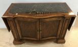 Unique Furniture Louis Style Server with faux marble insert and drop leaf sides, double door, cherry, good condition, 30"h., 47"w., 21"d. Unique Furniture Louis Style Server with faux marble insert and drop leaf sides, double door, cherry, good condition, 30"h., 47"w., 21"d.
