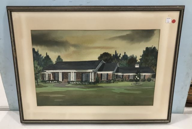Signed Watercolor painting of family home, signed lower right, matted, framed, 28"h., 37"w. Signed Watercolor painting of family home, signed lower right, matted, framed, 28"h., 37"w.
