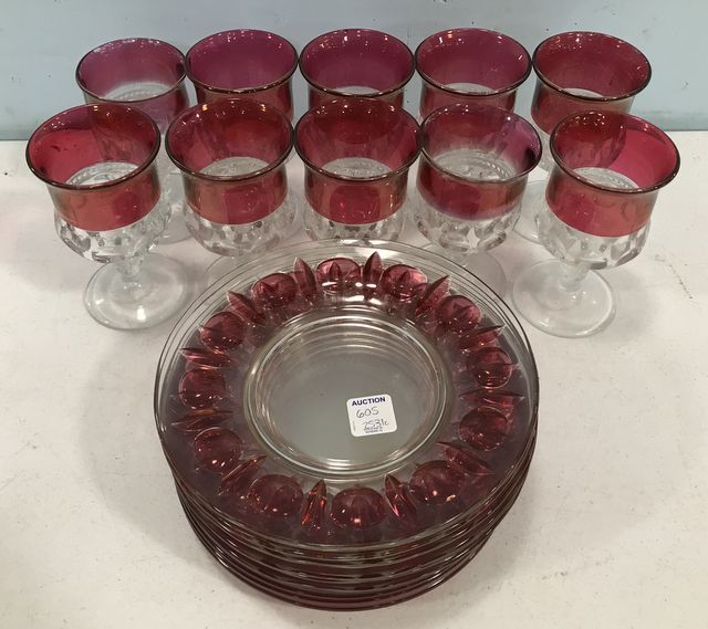 605 Indiana Kings Crown Red Ruby Goblets and Plates