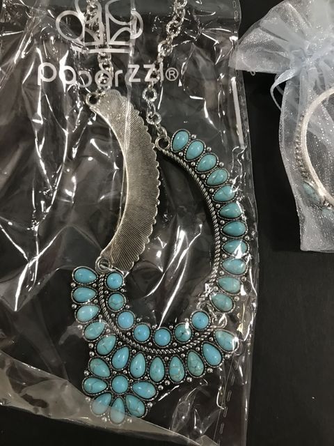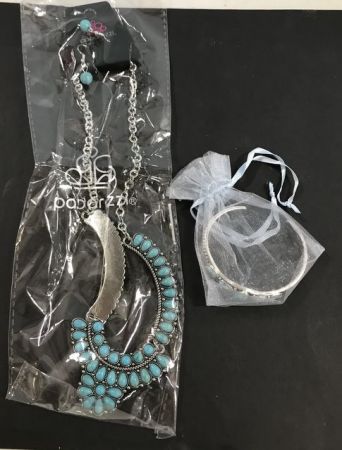 Faux Turquoise Necklace and Cuff Bracelet, silver color, new condition. Faux Turquoise Necklace and Cuff Bracelet, silver color, new condition.