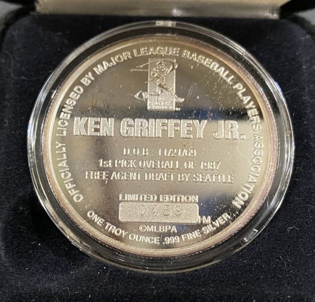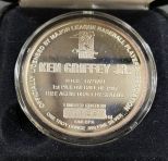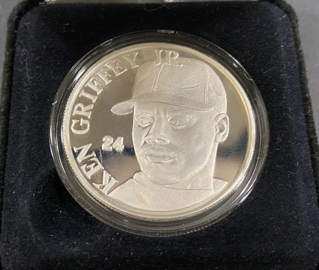 Ken Griffey Jr. #24 One Troy Ounce Coin, .999 fine silver, limited edition 1 0f 2500, Highland mint, with Certificate of Authenticity, in case. Ken Griffey Jr. #24 One Troy Ounce Coin, .999 fine silver, limited edition 1 0f 2500, Highland mint, with Certificate of Authenticity, in case.