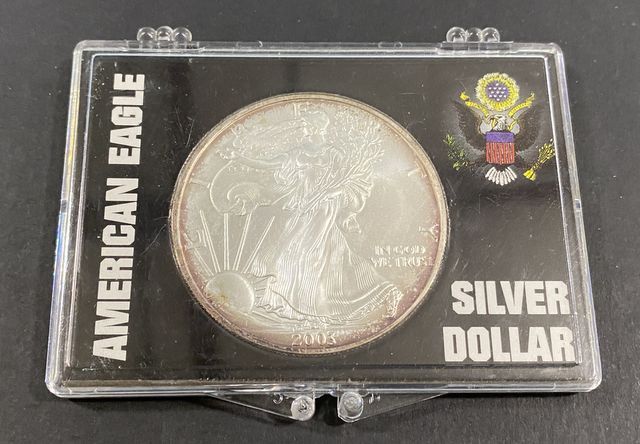 2003 American Eagle Silver Dollar, in plastic case. 2003 American Eagle Silver Dollar, in plastic case.