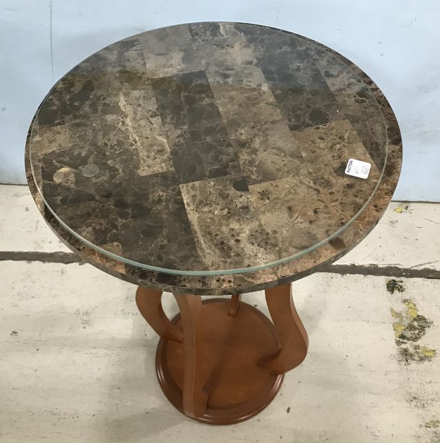 New Round Faux Marble Wrap Side Table/plant stand, includes glass top, 28"h., 18"dia. New Round Faux Marble Wrap Side Table/plant stand, includes glass top, 28"h., 18"dia.
