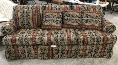Marcus Peters Upholstered Three Cushion Sofa, floral pattern, 7 ft. Marcus Peters Upholstered Three Cushion Sofa, floral pattern, 7 ft.